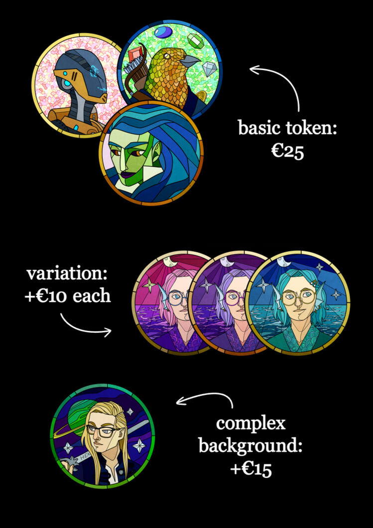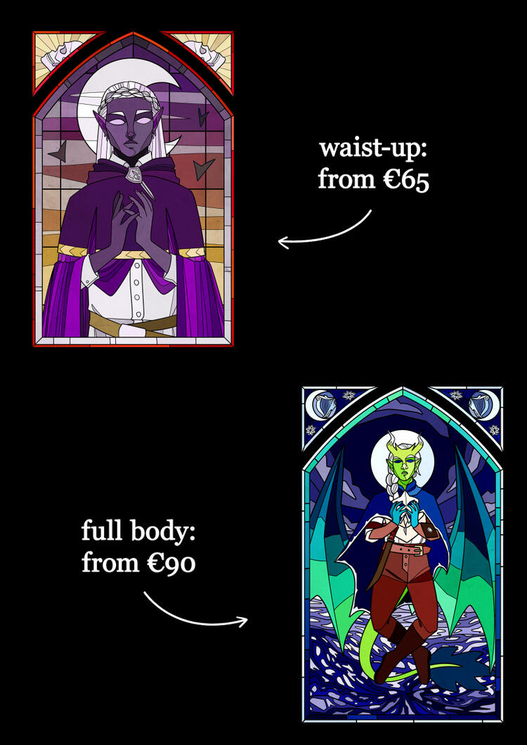 Important: prices may vary with the complexity of the piece (detailed background, nonhumanoid character and so on)